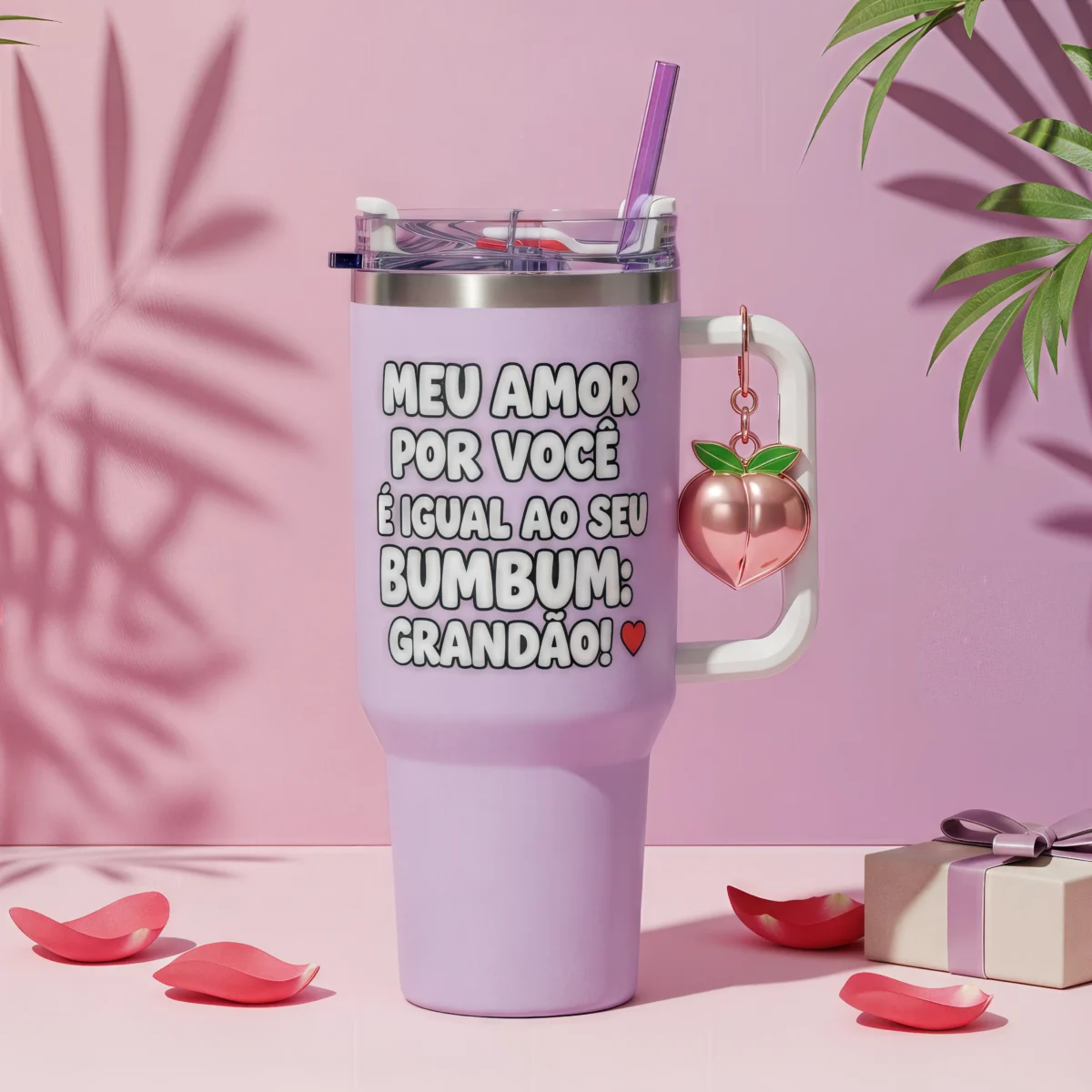 🍑 Copo Térmico Amor Grande Igual ao Bumbum 1,15 L + Pingente Brinde