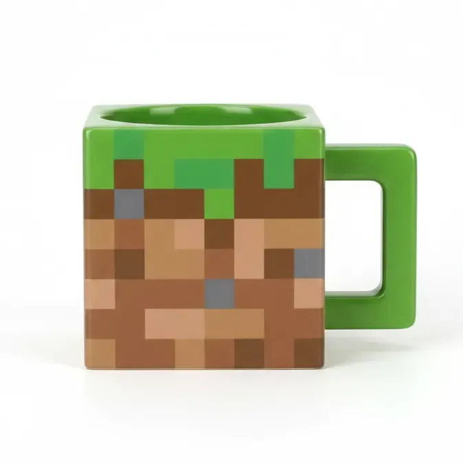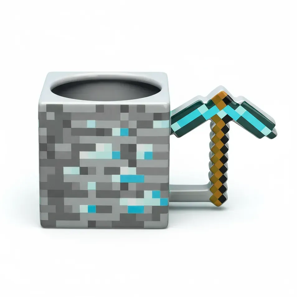 Fabricada em material resistente e com acabamento de alta qualidade, a caneca possui formato quadrado 3D, igual aos blocos do jogo, e vem em diversos modelos colecionáveis — escolha seu favorito: Creeper, TNT, Terra, Steve, Ender, Minério de Diamante com Picareta e mais!