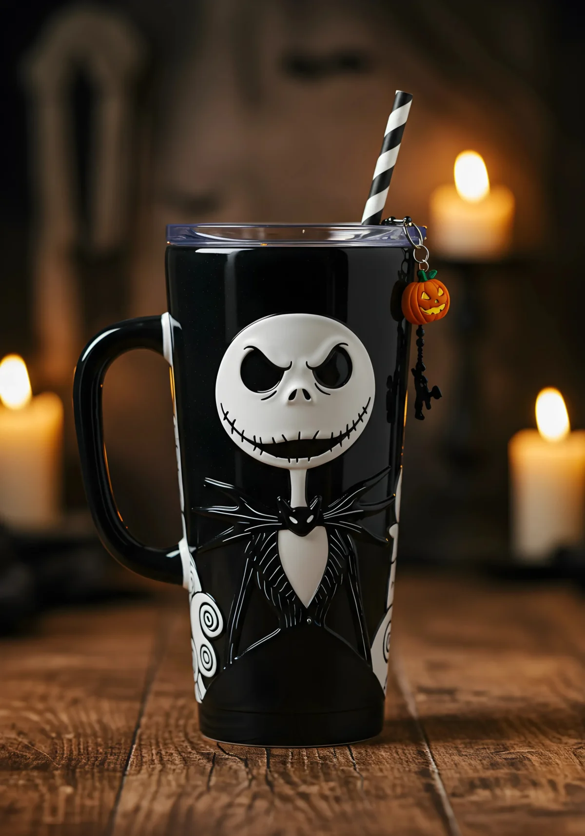 🖤 Para quem ama o estilo gótico e o clima de Halloween, o Copo Térmico Jack Skellington é um verdadeiro tesouro! Com design sombrio e expressão icônica do personagem de “O Estranho Mundo de Jack”, este copo é perfeito para os fãs do clássico de Tim Burton. ☠️