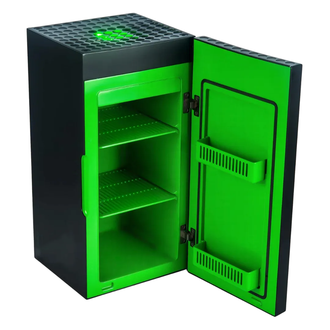 Transforme seu setup em um verdadeiro quartel-general gamer com o Frigobar Xbox Series X, inspirado no design icônico do console mais poderoso da nova geração. Estilo, funcionalidade e exclusividade se unem para manter suas bebidas sempre geladas enquanto você domina os jogos.